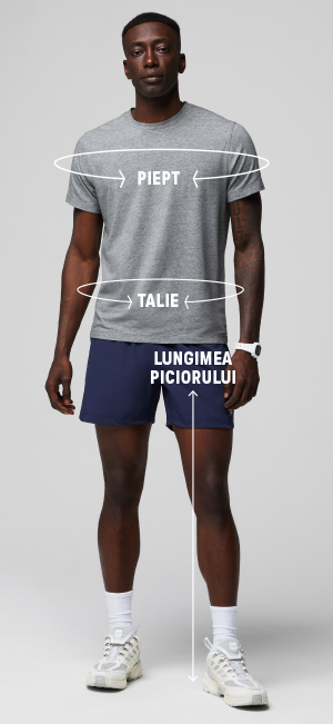 Pantalonii noștri scurți sport sunt confecționați dintr-un material elastic, astfel încât pot avea o croială mai strânsă decât alte modele. Dacă ești între două mărimi, îți recomandăm să alegi mărimea mai mare.